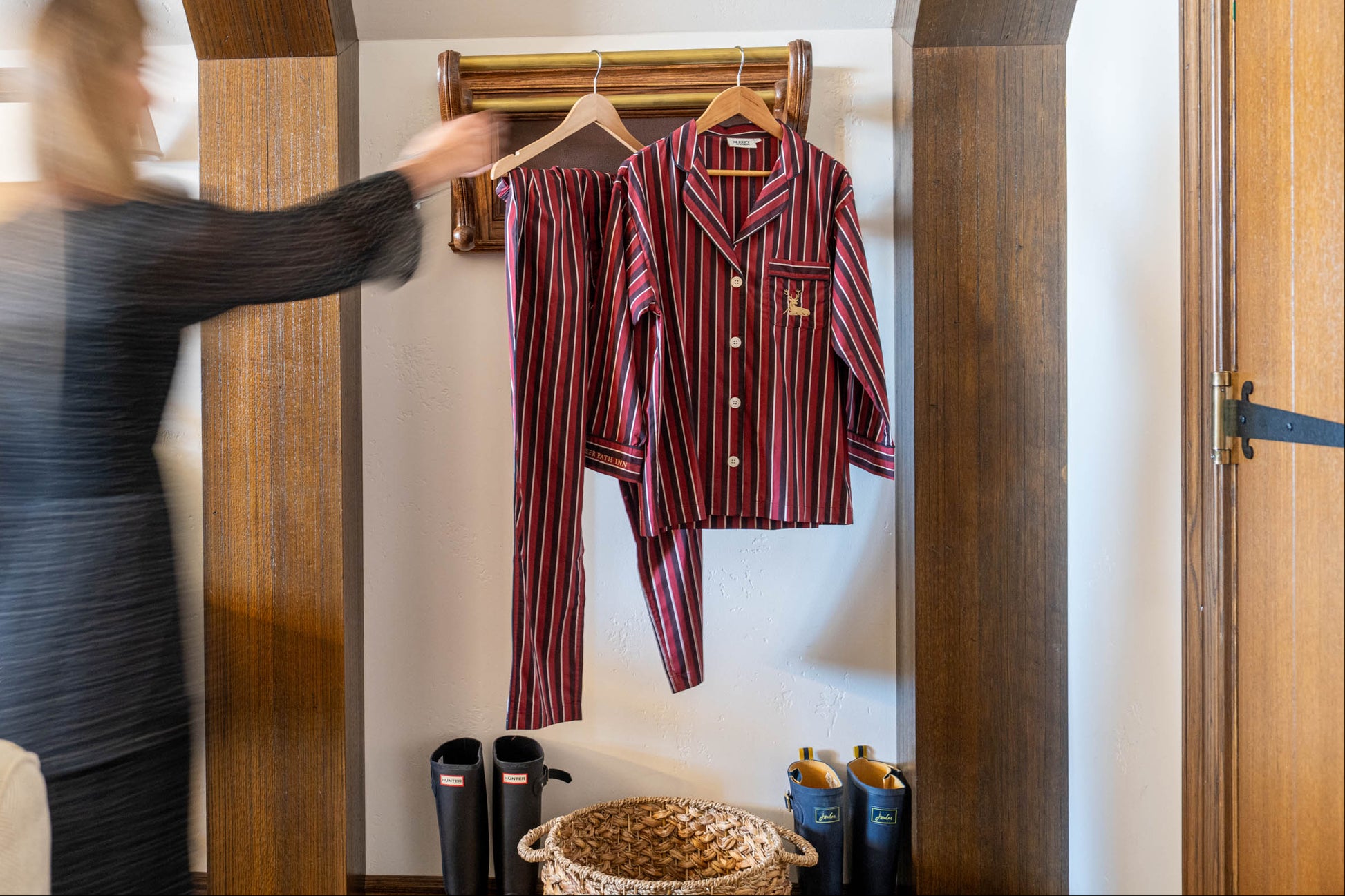 Made from superfine cotton, it features The Deer Path Inn's logo hand-embroidered on the chest pocket & sleeve cuff. The pants have two side pockets, a button fly and adjustable drawstring. The women's pair comes in Sleepy Jones’ classic Marina style, the men's pair is in the classic Henry style.